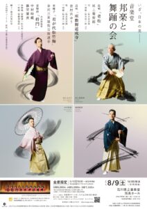 「音楽堂 邦楽邦舞の会」に出演しました その他の公演 2025.08.23 2025年8月9日「音楽堂 邦楽邦舞の会」(石川県立音楽堂)に出演しました。 立方:中村 時藏、藤間 蘭黄浄瑠璃:常磐津 一佐太夫、常磐津 松希太夫、常磐津 千寿太夫、常磐津 佐知太夫三味線:常磐津 菊寿郎、常磐津 菊与志郎、(上調子)岸澤 満佐志